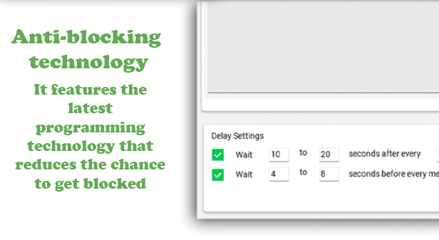 3: We provide settings like the time between messages and other advanced settings that prevent your account from getting blocked.